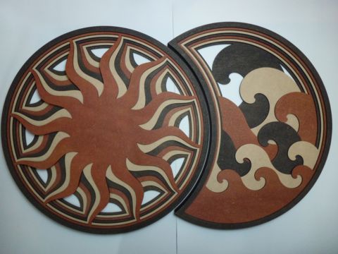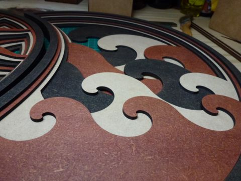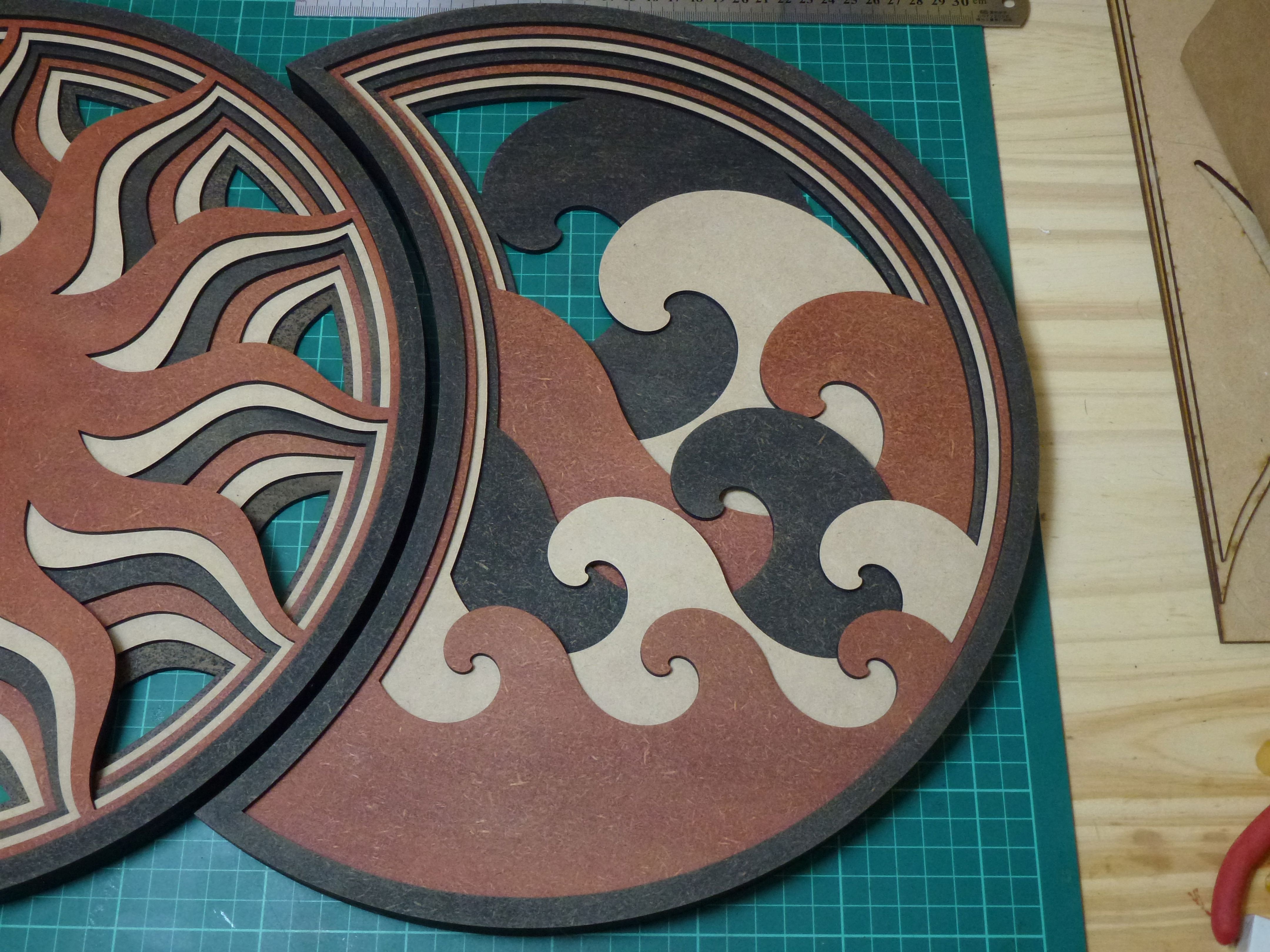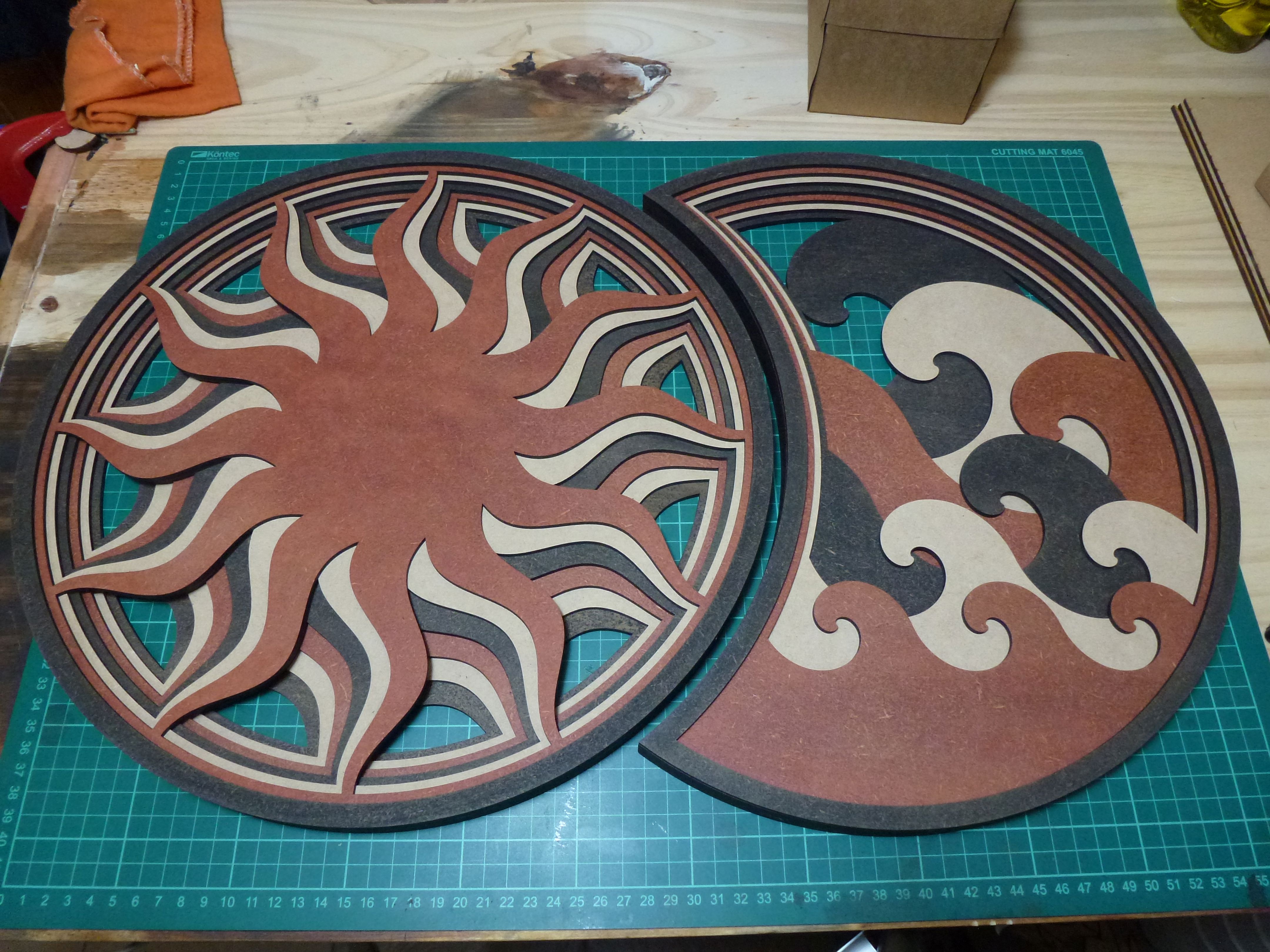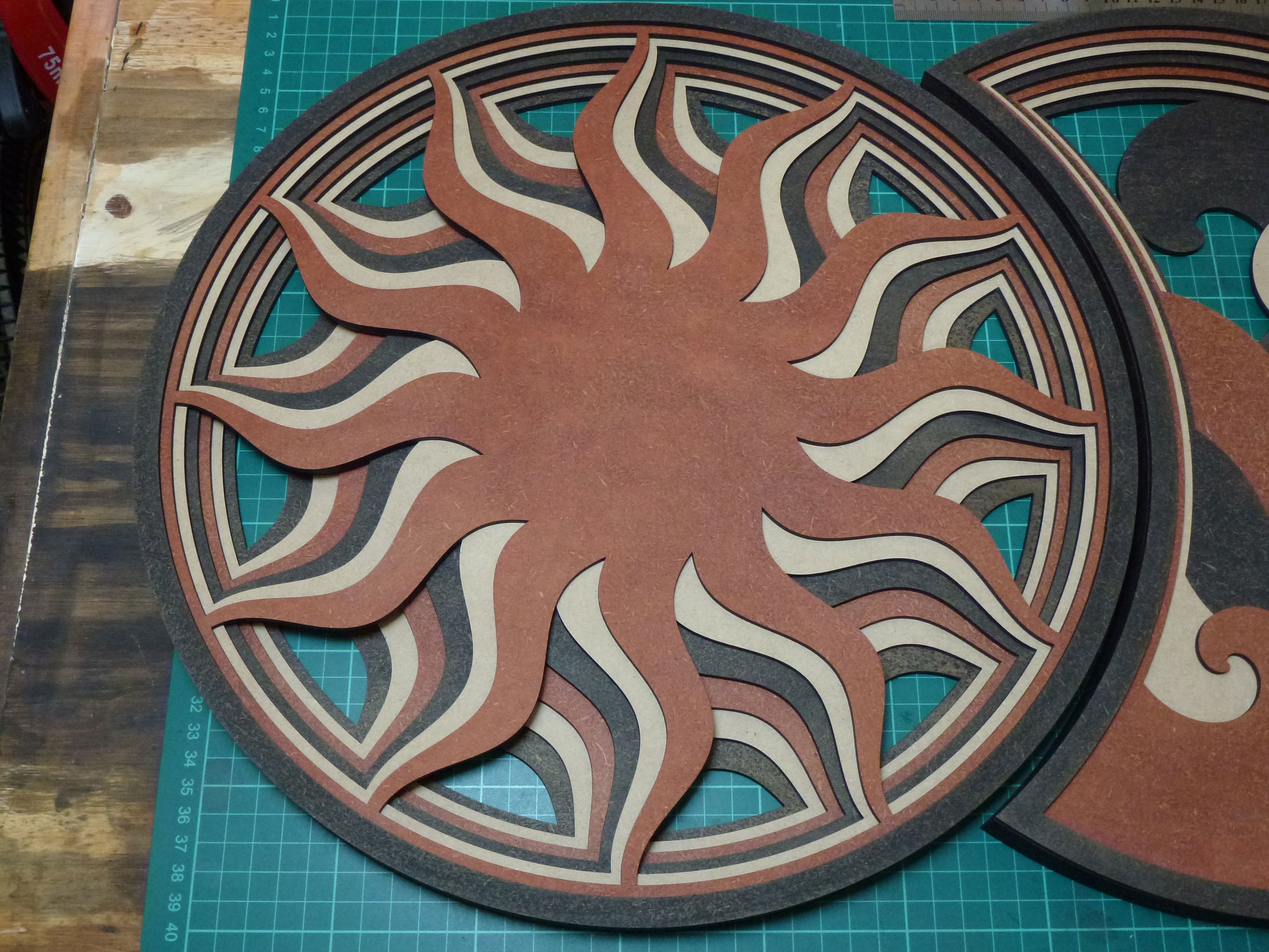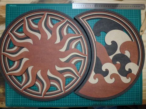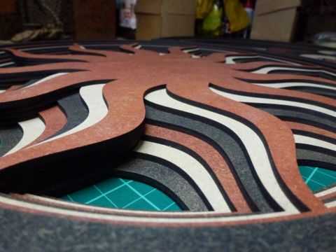 Mandala en 2 piezas de MDF/Fibrofacil: con 7 capas en negro, rojo y natural.