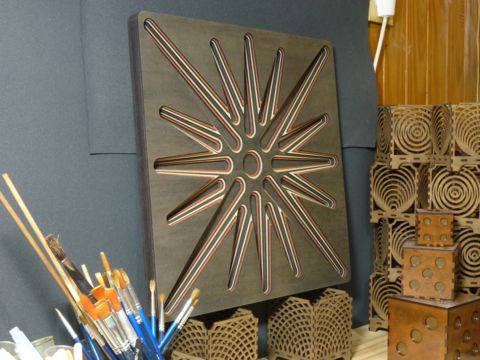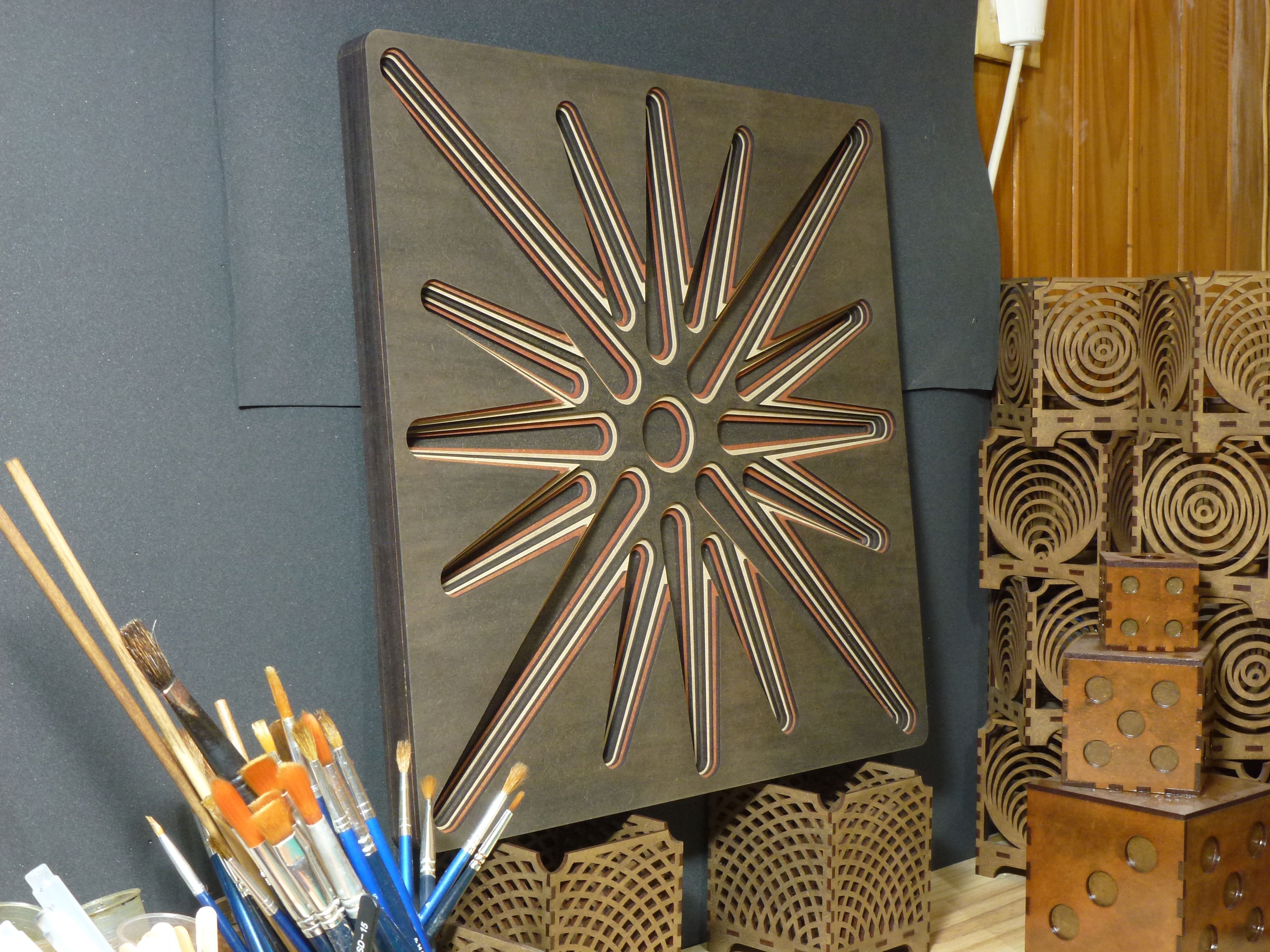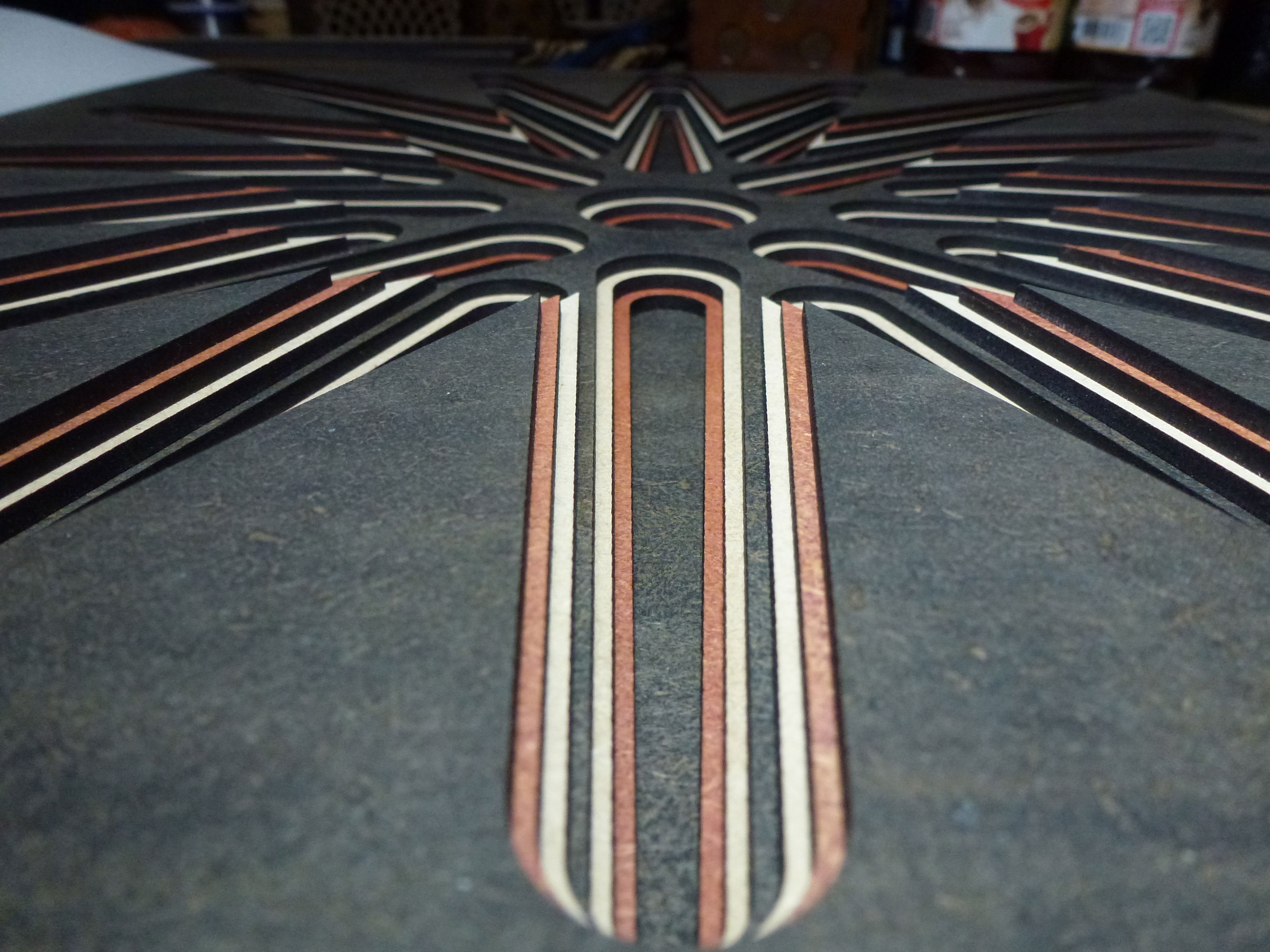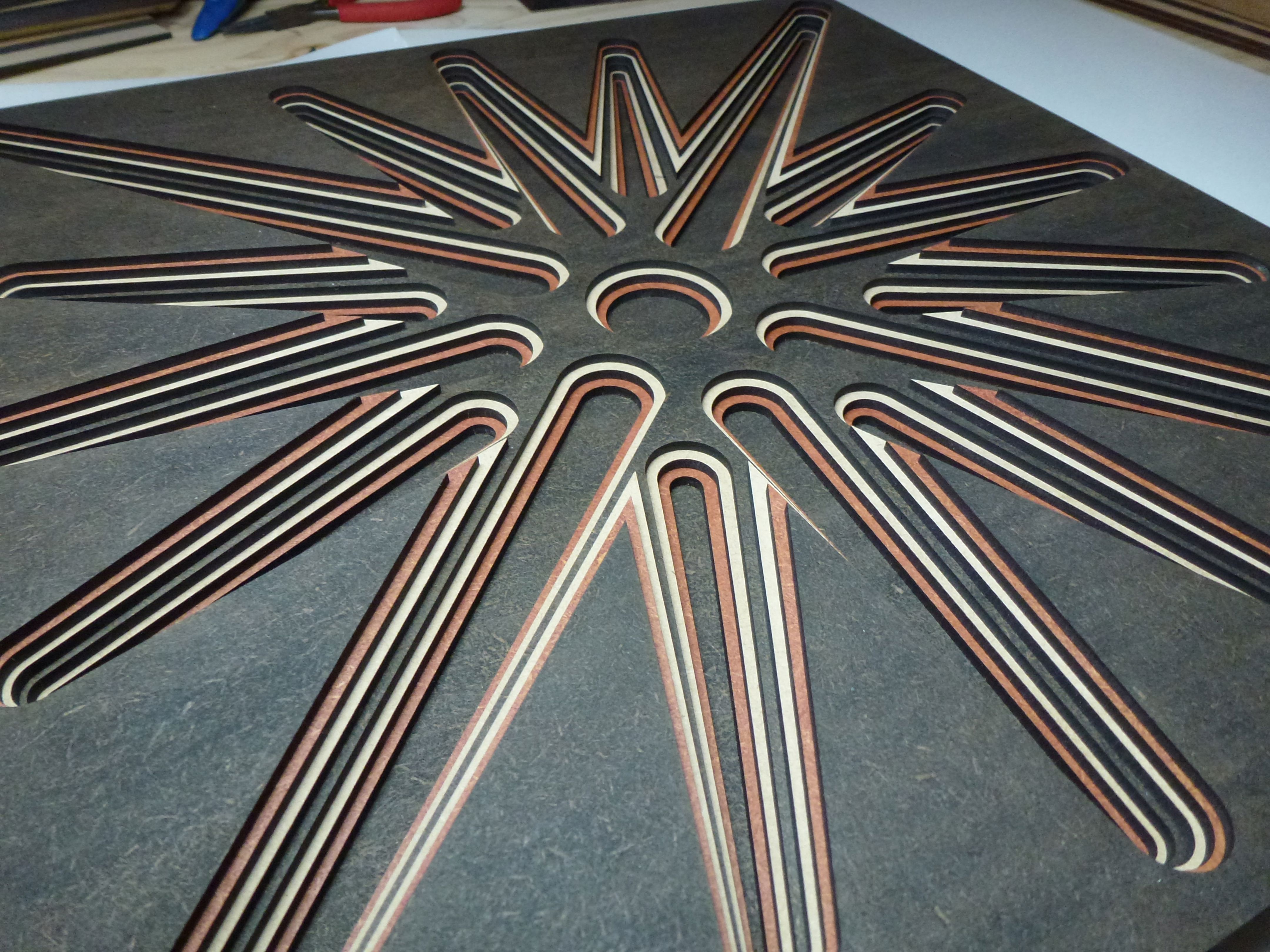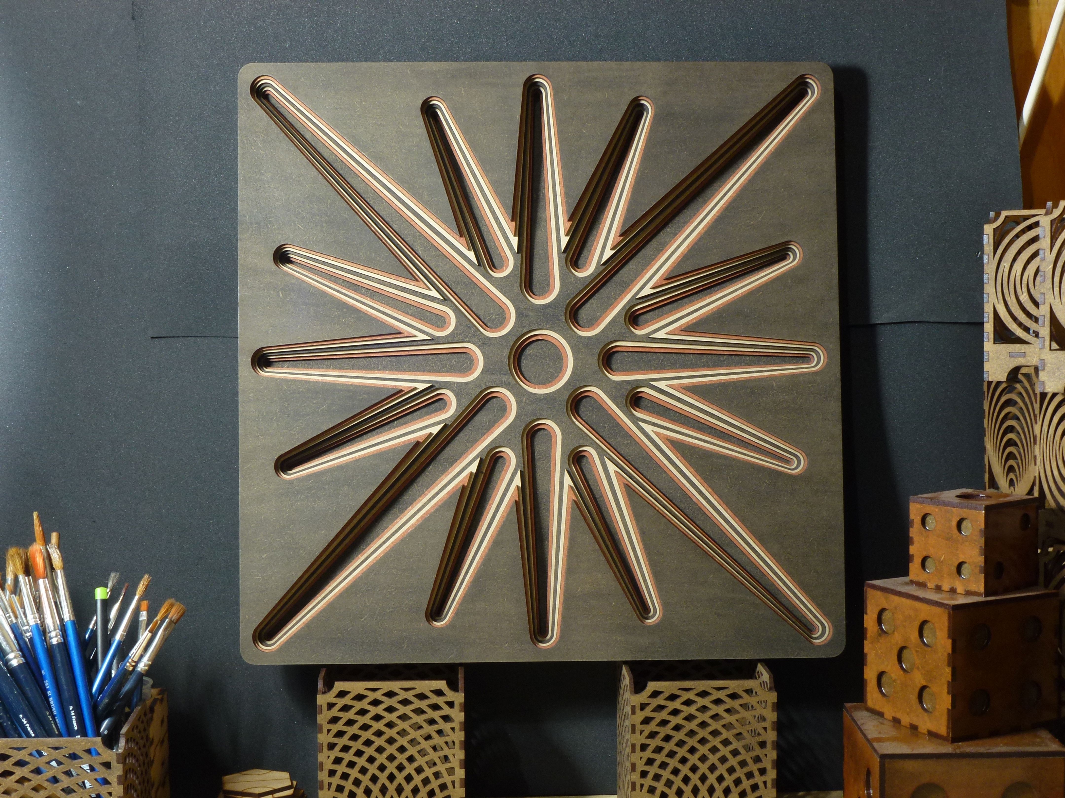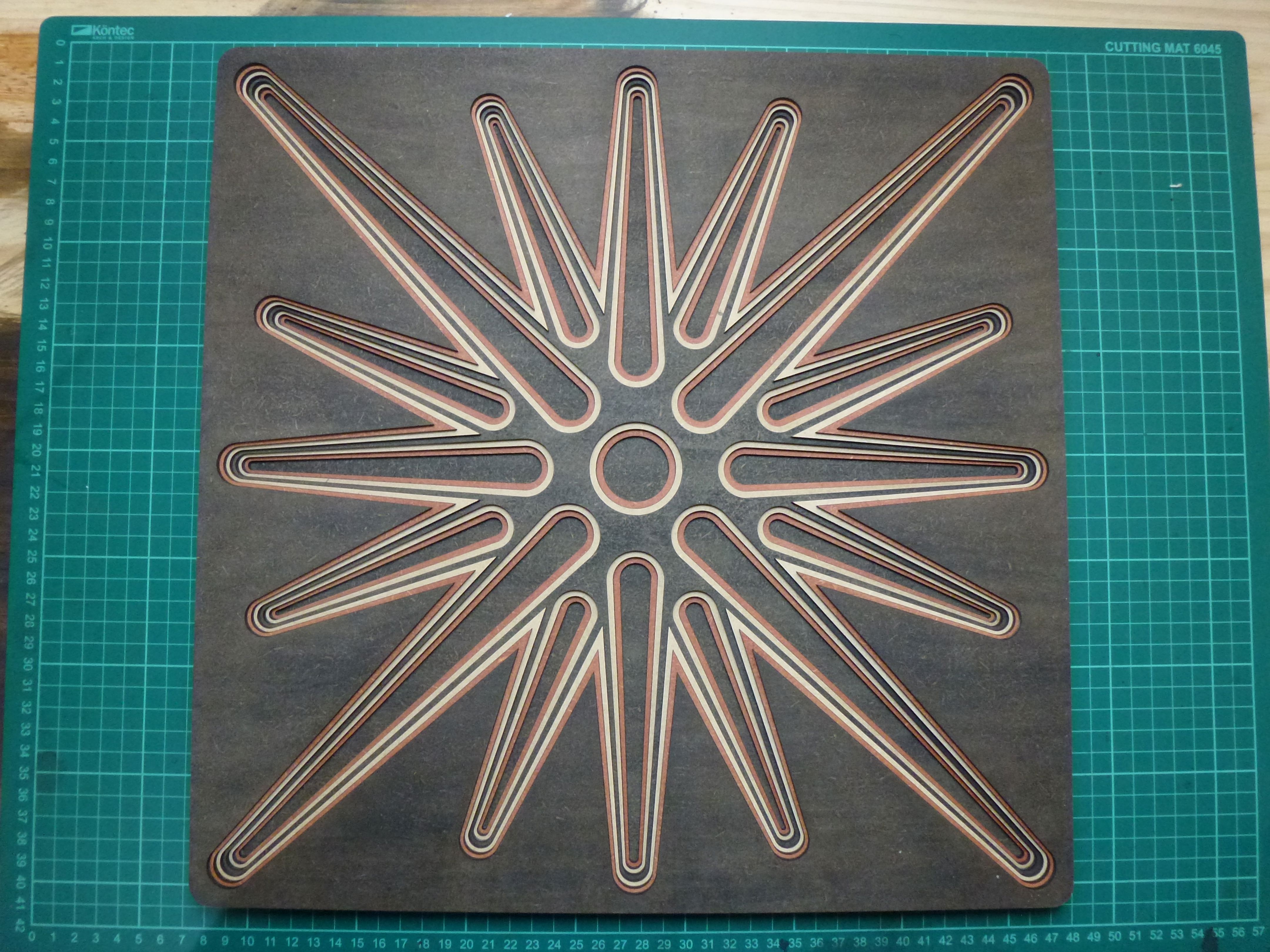 Mandala de MDF/Fibrofacil: con 7 capas en negro, rojo y natural.