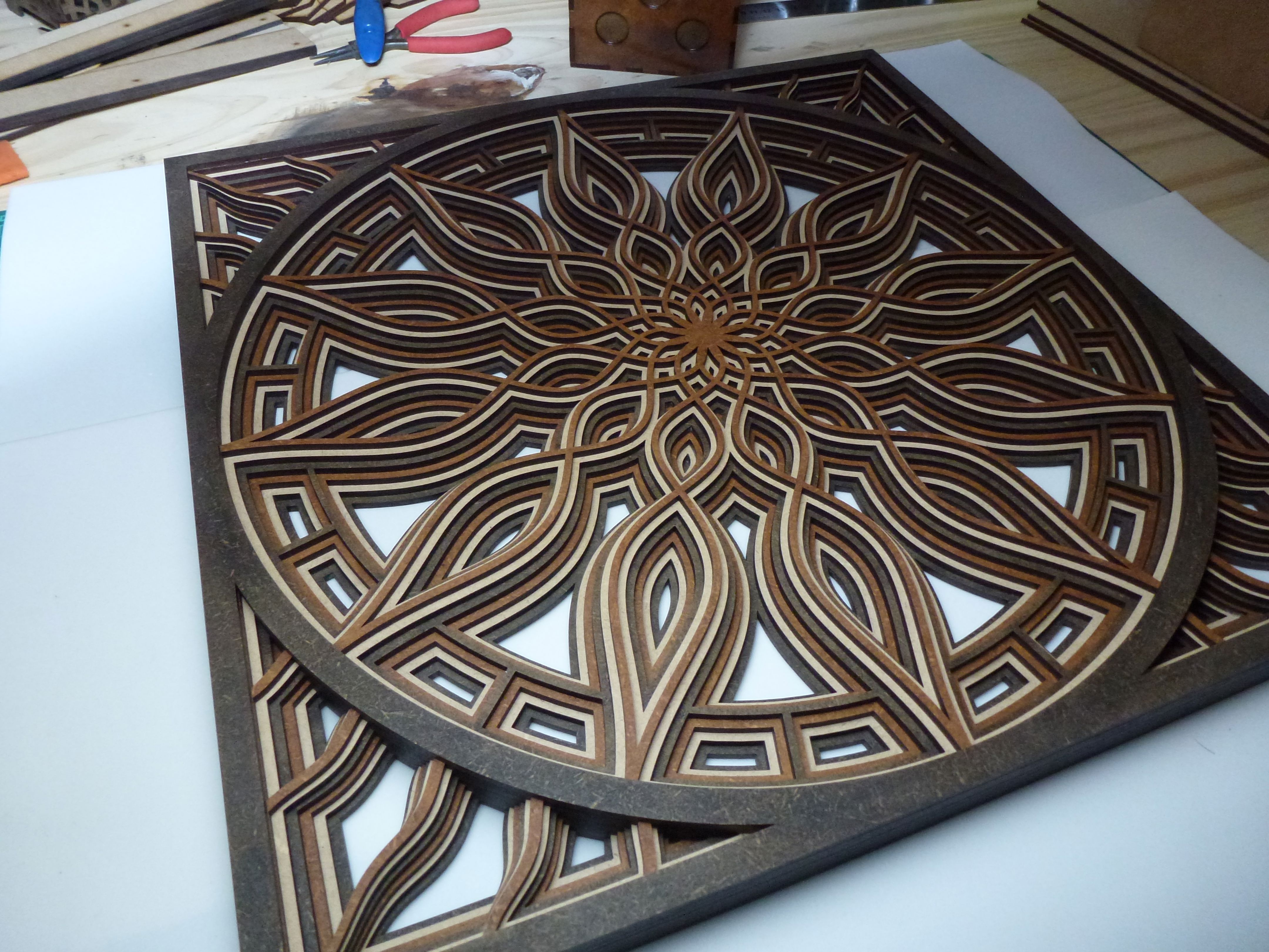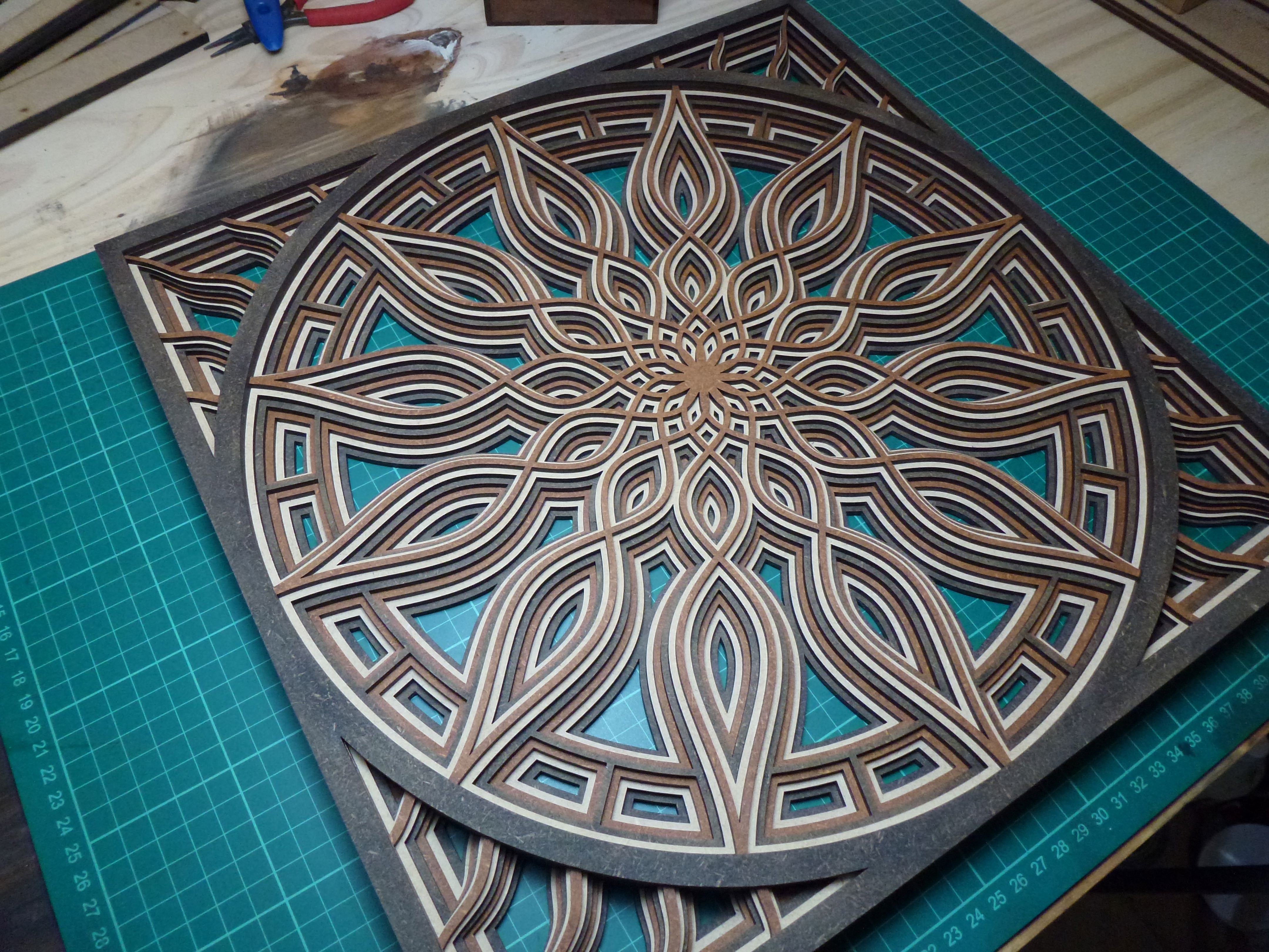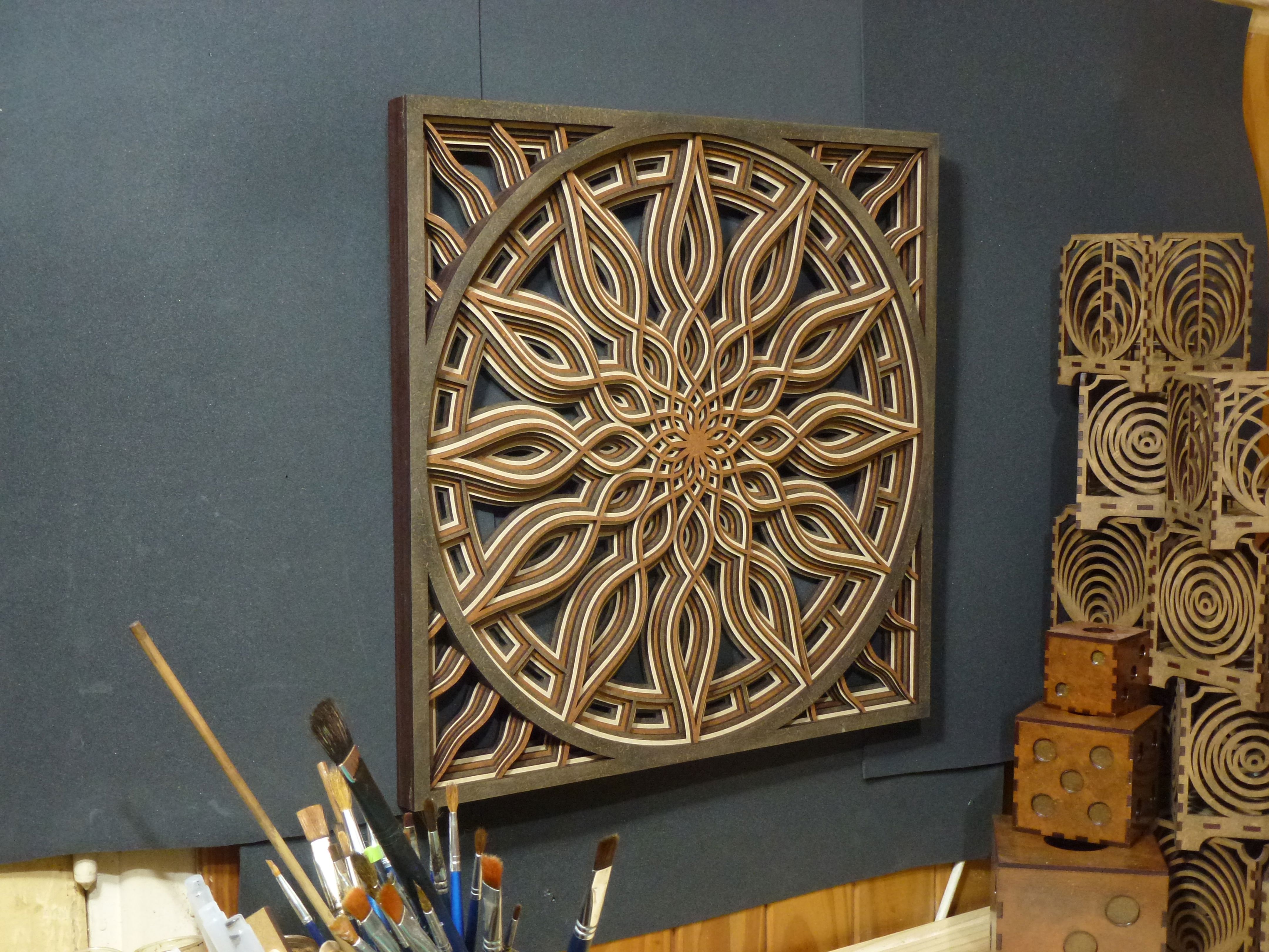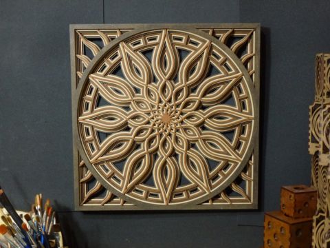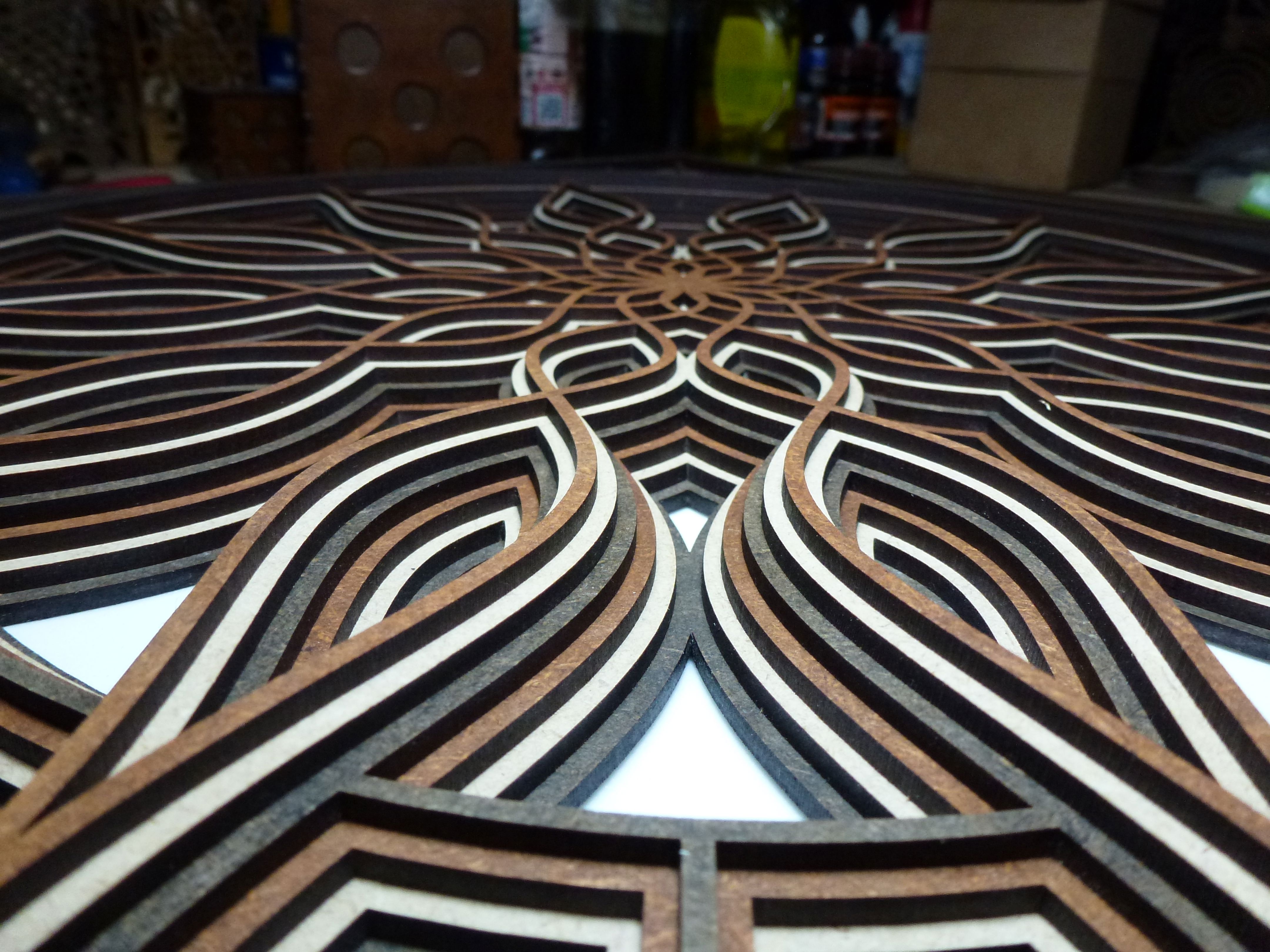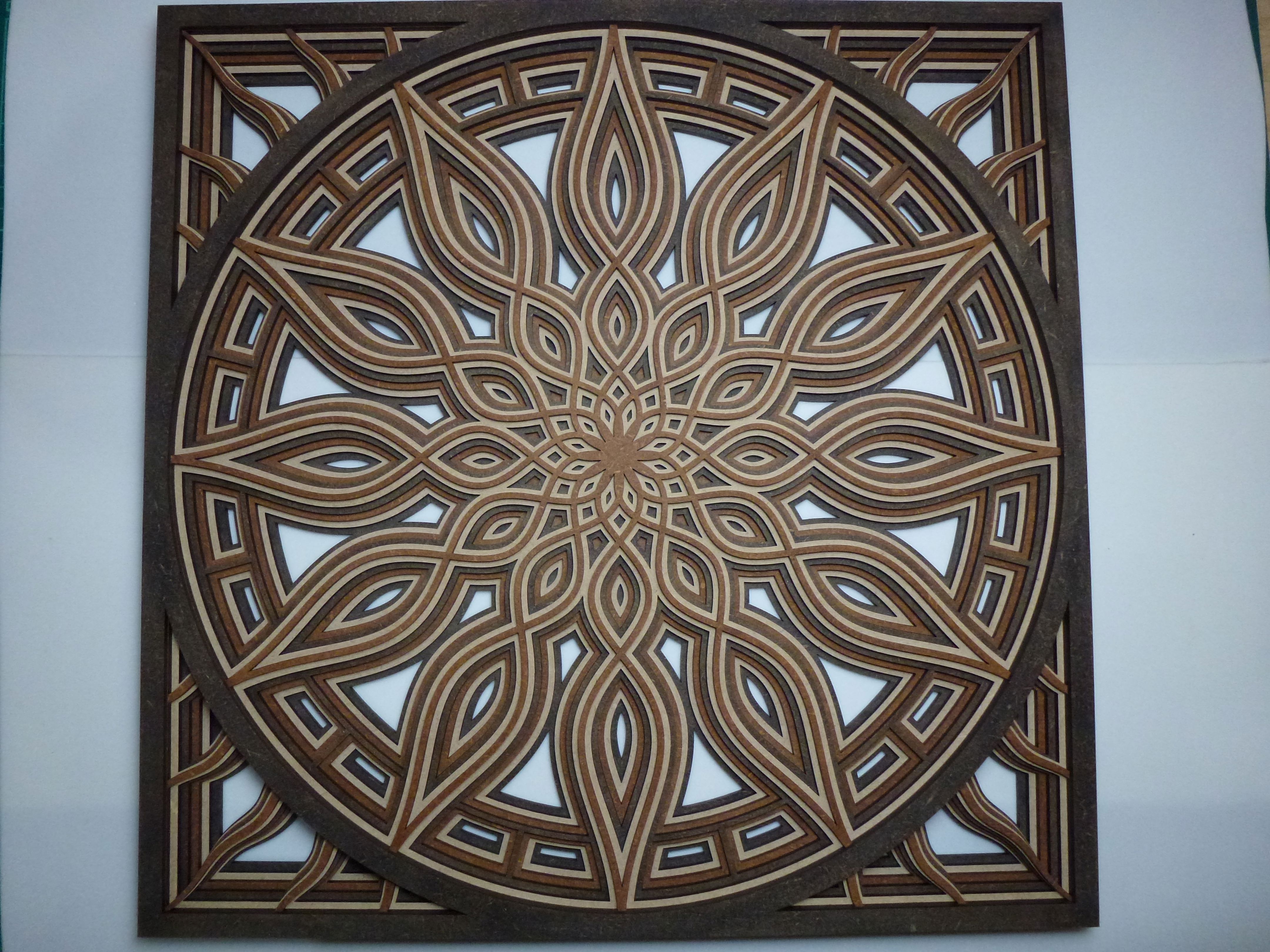 Mandala de MDF/Fibrofacil: con 7 capas en negro, marron y natural.